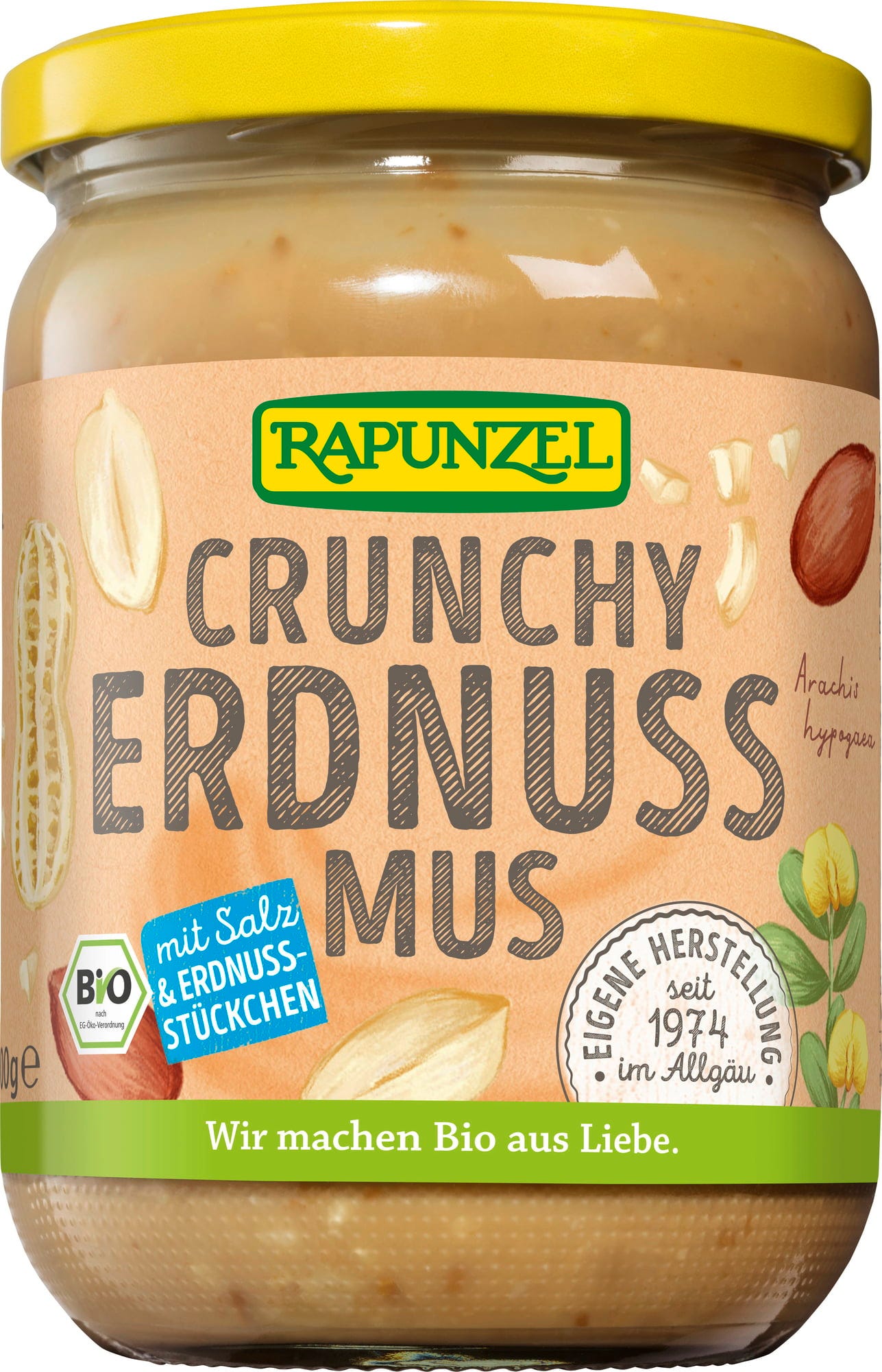 De pindakaas wordt gemaakt in een speciaal proces zonder toevoegingen, alleen verfijnd met zeezout. Rapunzel roostert de pinda's zachtjes, waardoor het volle aroma van de noten zich volledig kan ontvouwen. De pinda's worden dan alleen fijngemalen en verfijnd met knapperige stukjes pinda en een snufje zeezout.