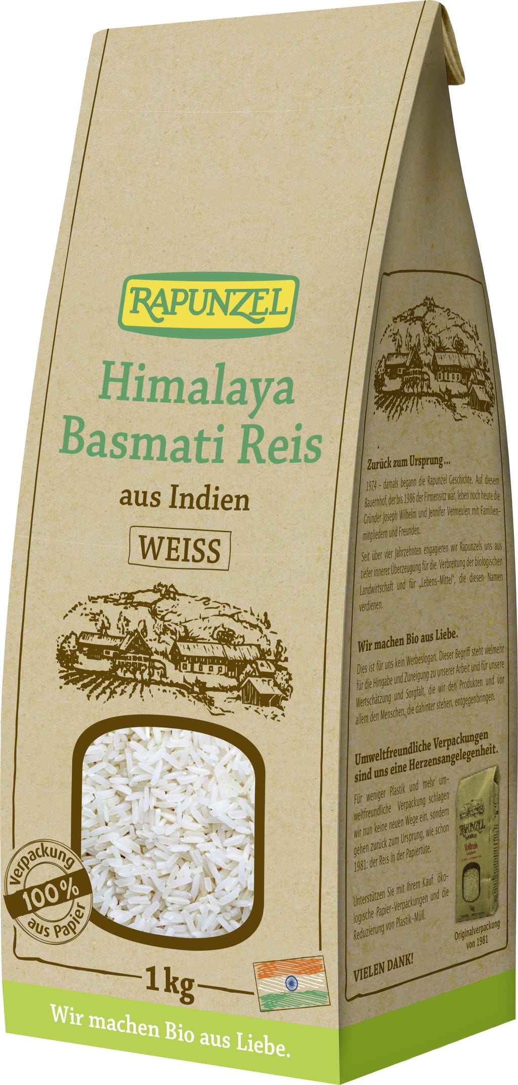 Rapunzel haalt deze basmatirijst uit de Indiase staten Uttarakhand en Uttar Pradesh aan de voet van de Himalaya. Talrijke boerenfamilies cultiveren de traditionele "Dehradun Type 3" soort volgen strikte codes.