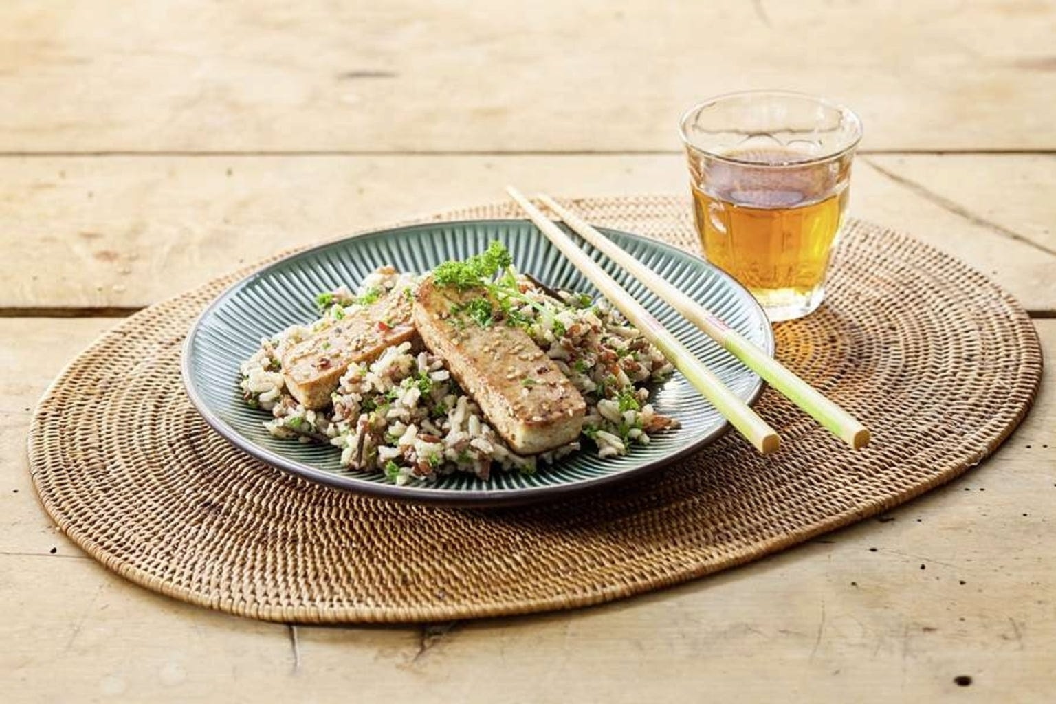 kook 200 g rijst met 400 ml water ongeveer 45 tot 50 minuten tot de rijstkorrels opengebarsten zijn. Daarna verwerken zoals gewenst.
