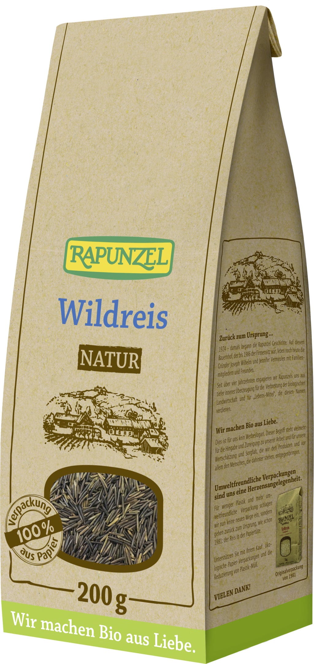 Je kunt de wilde rijst gebruiken als bijgerecht bij verschillende gerechten, als vulling in combinatie met groenten, in soepen of om salades mee te verfijnen. De wilde rijst van Rapunzel is afkomstig van gecertificeerde biologische productie.