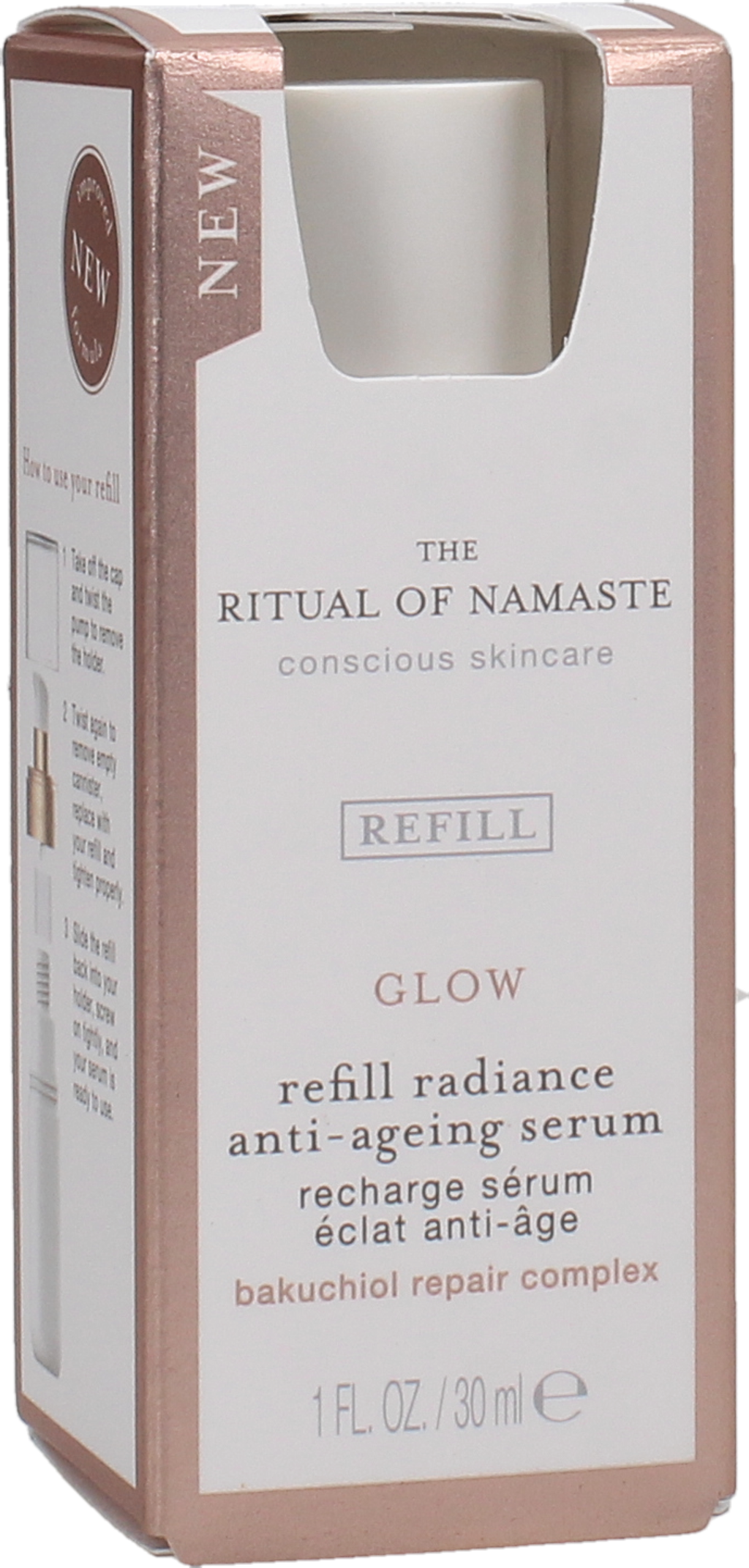 Met deze praktische vulling vul je eenvoudig de elegante flacon van The Ritual of Namaste Anti-Ageing Serum bij en geef je jouw huid een extra dosis verzorging!