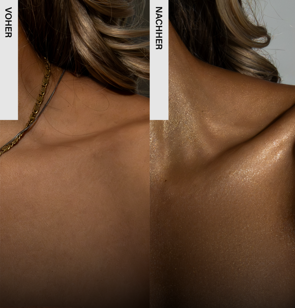 - Het serum is ook geschikt voor het lichaam - voor een onmiddellijke glow en extra gouden glans.