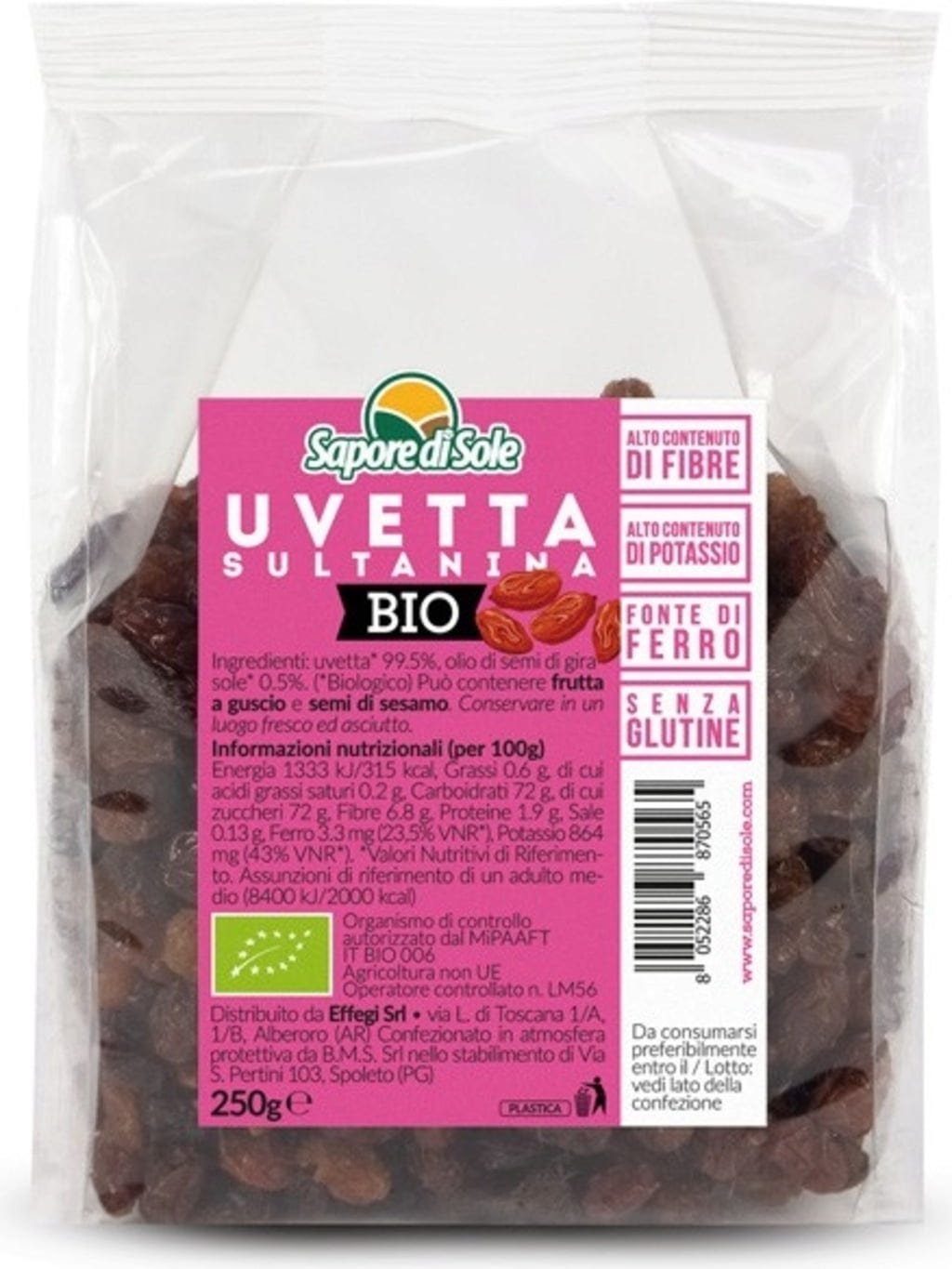 Sapore di Sole Biologische Rozijnen, 250 g