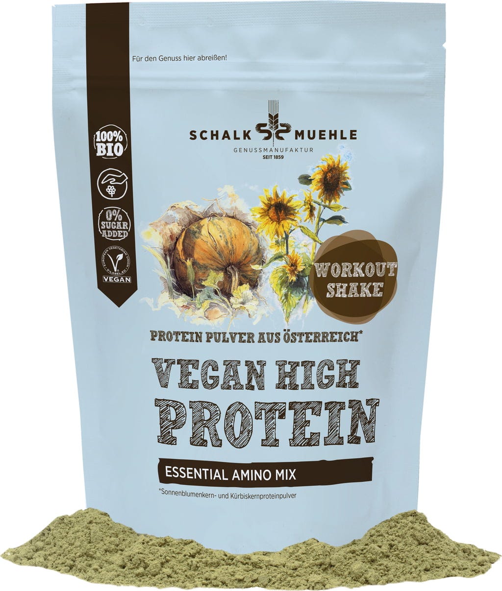 De combinatie van Oostenrijkse pompoen- en zonnebloempitten voorziet je lichaam van alle essentiële aminozuren. Slechts 30 g is genoeg om 29% van je dagelijkse behoefte te dekken. Daarbij komt nog het uitstekende eiwitgehalte van bijna 60%. Voor of na een intensieve training, als bliksemsnelle shake tussendoor of als finishing touch bij je gerechten - met deze plantaardige mix kun je gemakkelijk aan je dagelijkse eiwitbehoefte voldoen.
