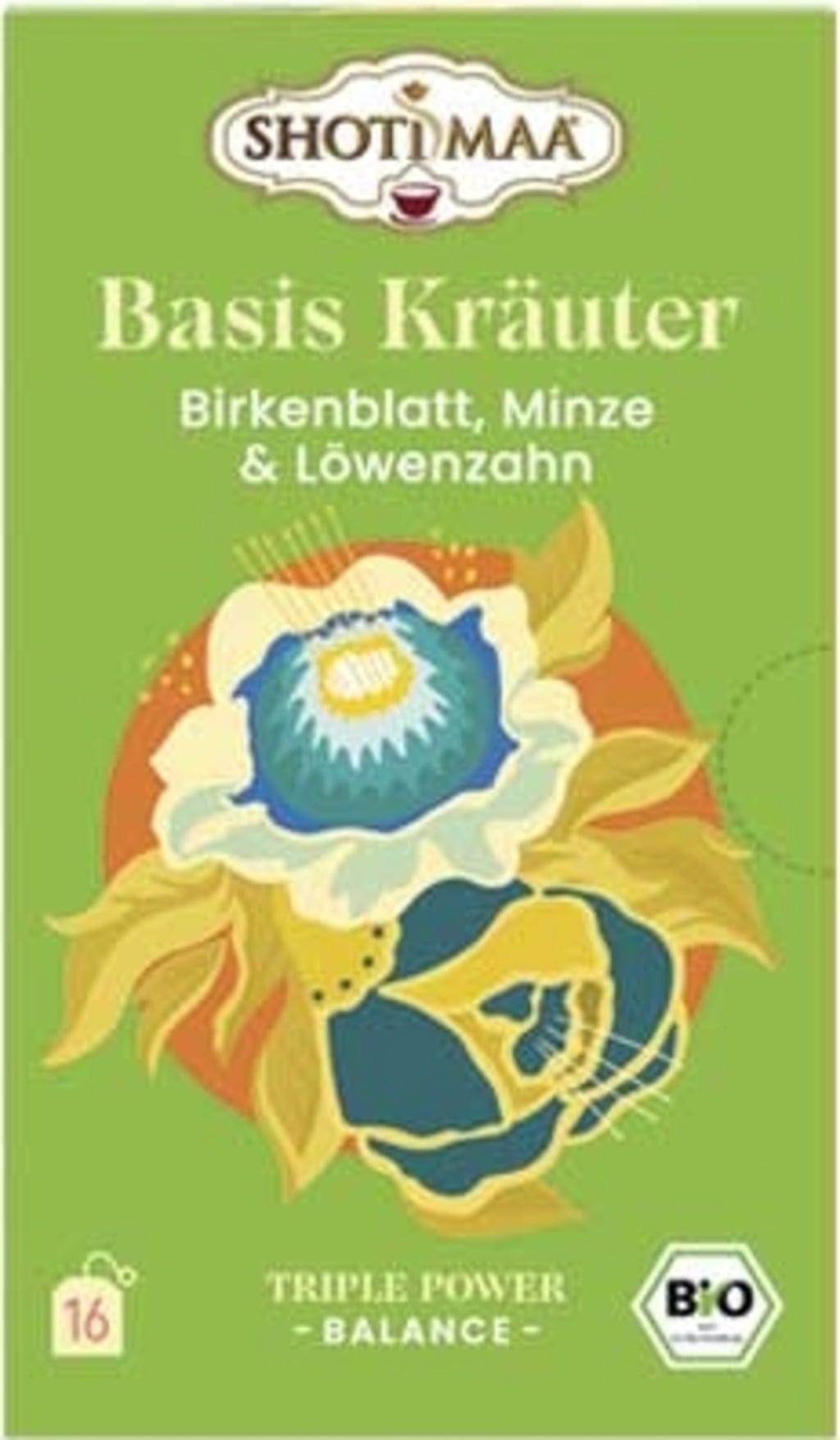 SHOTI MAA Biologische Kruidenthee Basis - Berkenblad, Munt & Paardenbloem, 16 theezakjes (32 g)