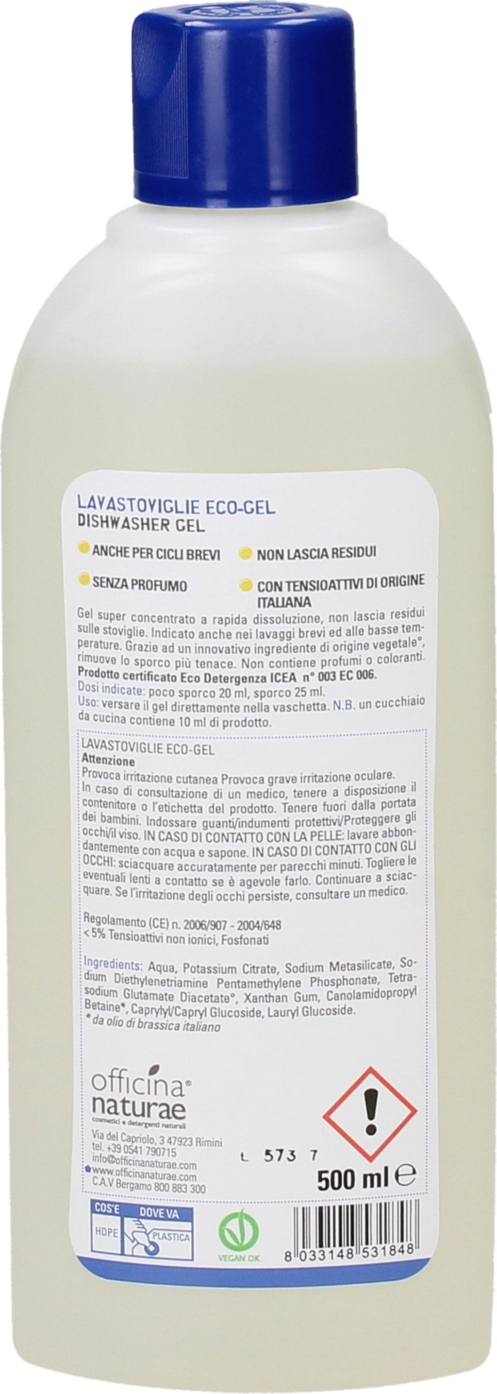 Aqua (Water), Potassium Citrate, Sodium Metasilicate, Sodium Diethylenetriamine Pentamethylene Phosphonate, Tetrasodium Glutamate Diacetate, Xanthan Gum, Canolamidopropyl Betaine, Caprylyl/Capryl Glucoside, Lauryl Glucoside