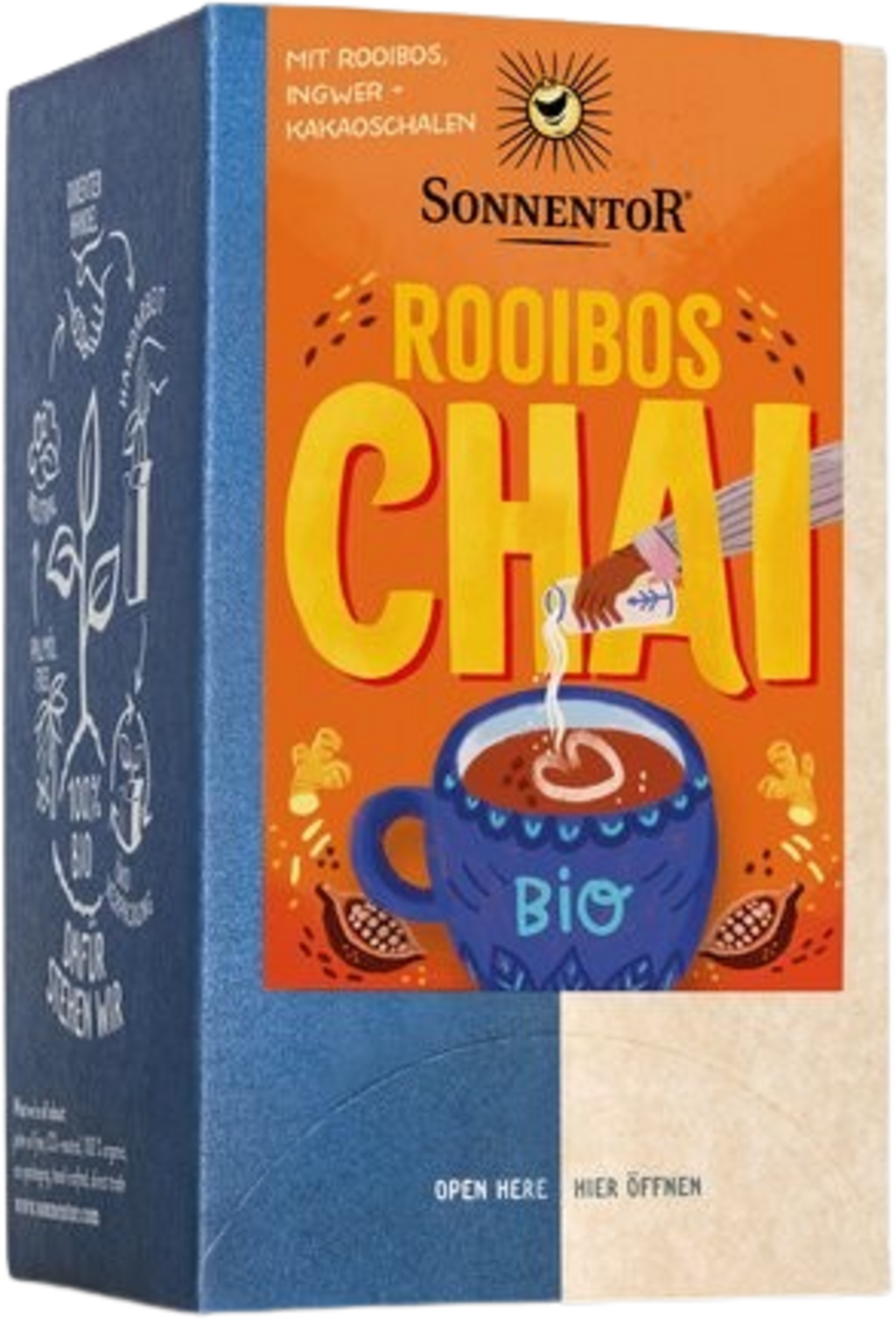 Proef de intense chaikruiden gecombineerd met rooibos. Deze unieke theemelange van Sonnentor verleidt je in de wereld van oosterse specerijen. Verheug je op de verscheidenheid aan smaken, waaronder moutige, chocoladeachtige, kruidige en warme aroma's.