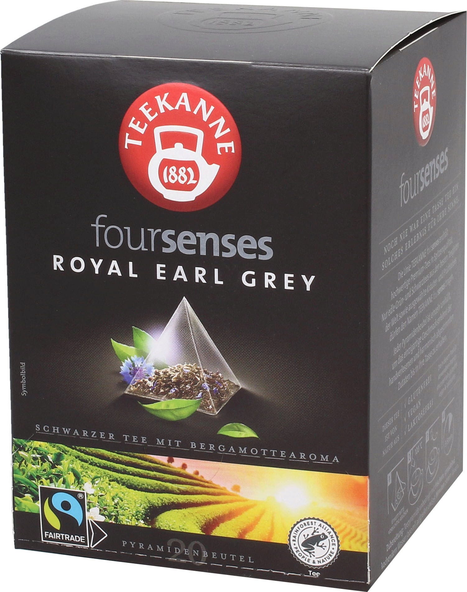 TEEKANNE Foursenses Thee Piramides Fairtrade Royal Earl Grey, 20 Piramidezakje (45 g)