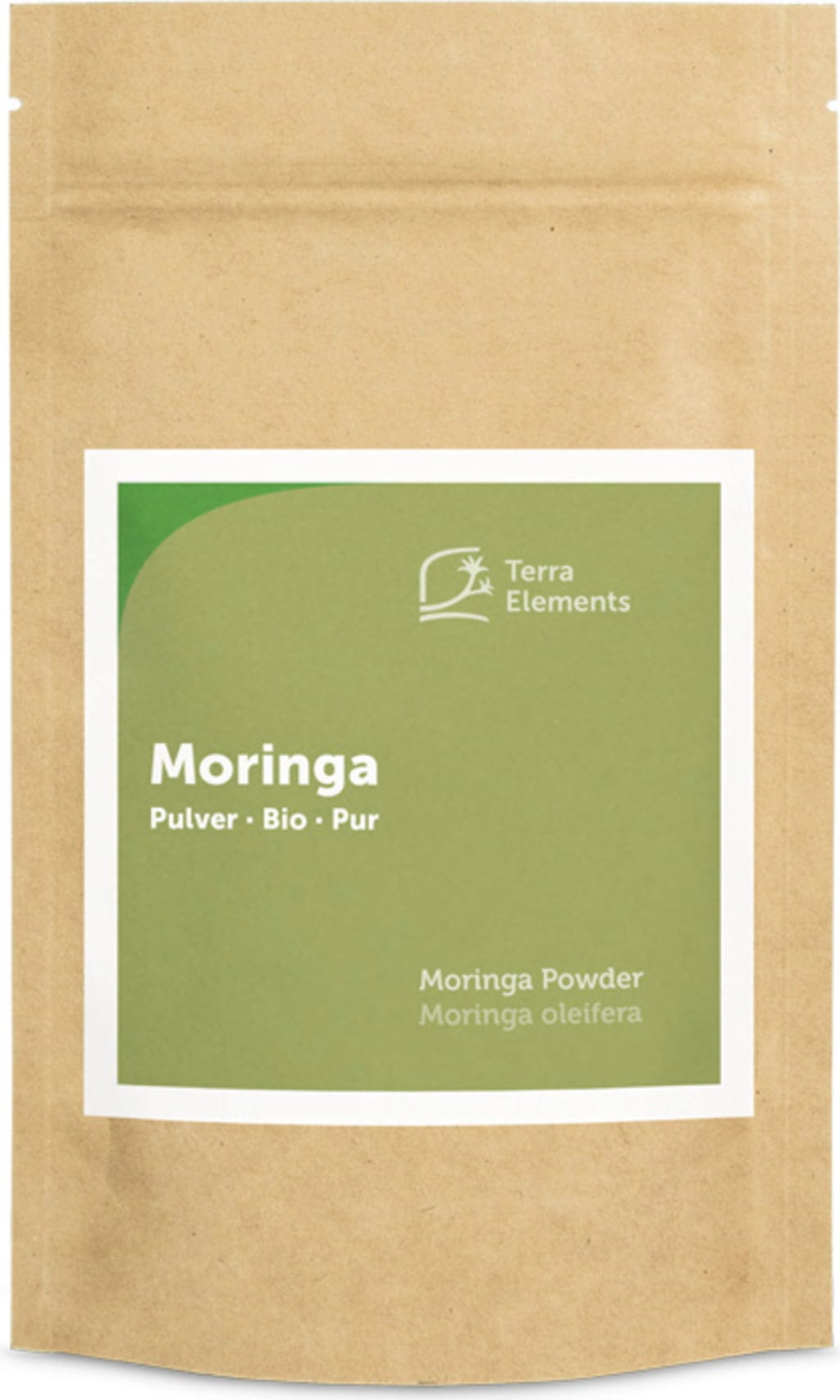 Het Bio Moringa Poeder van Terra Elements wordt gewonnen uit de bladeren van de mierikswortelboom (Moringa oleifera). Deze bevatten van nature vitamine A.